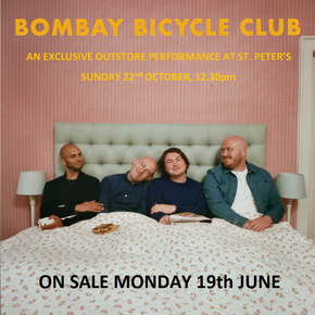 We're delighted to be welcoming back Bombay Bicycle Club for a lunchtime outstore at St. Peter's on Sunday 22nd October...