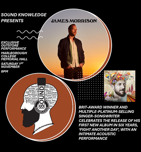 We're delighted to announce that BRIT Award-winning singer-songwriter James Morrison will be coming to Marlborough College Memorial Hall on Saturday 1st November as part of an intimate acoustic record shop tour. He'll be playing a promotional set from 8pm to celebrate the release of 'Fight Another Day', his first album of new material in six years.